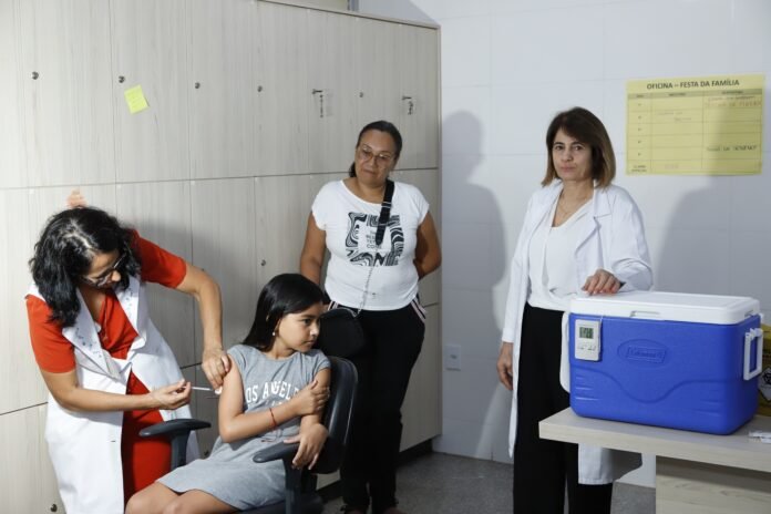 Parte do PSE, a ação realizada na EC 11 de Taguatinga integra mobilização nacional entre os dias 14 e 25 de abril – um esforço dos ministérios da Saúde e da Educação para ampliar a cobertura vacinal e proteger crianças e adolescentes. A meta é imunizar 90% dos alunos.