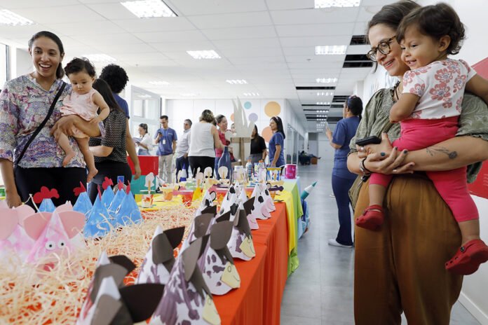 Além disso, é proporcionado um ambiente seguro para as mães que podem ir até o berçário durante o horário de almoço para amamentar os filhos. “Temos um espaço de amamentação muito bem-estruturado, e as crianças permanecem aqui das 8h às 18h, recebendo cinco refeições ao longo do dia”, detalha Tânia Monteiro.