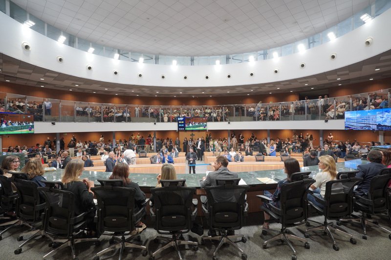 Logo no início da sessão, antes de transferir a condução da mesa às colegas da Alego, o presidente da Casa, Bruno Peixoto (UB), discursou em homenagem às mulheres escolhidas para receber a honraria legislativa. “Quero parabenizar cada uma de vocês que dedicam a vida a servir nossa sociedade. Aqui, aprovamos seus nomes por unanimidade. Nós, deputados e deputadas estaduais, reconhecemos e agradecemos pelo serviço de vocês”, disse.