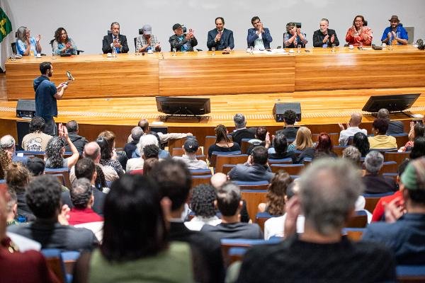 Durante o discurso de abertura da solenidade, o deputado Gabriel Magno (PT), presidente da Comissão de Educação e Cultura (CEC) e autor do encontro, destacou a contínua diminuição do orçamento anual destinado à cultura no DF, ressaltando que a redução dos recursos dificulta a atuação da categoria artística e leva ao fechamento de espaços culturais e ao abandono de equipamentos públicos.