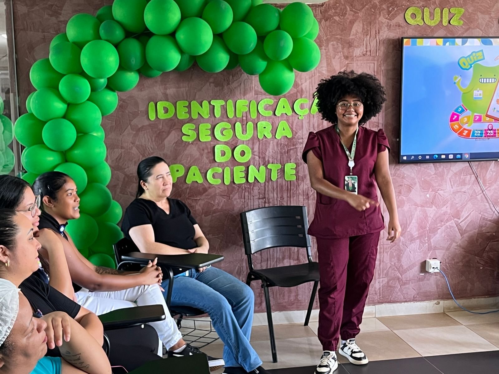 Nos dias 27 e 28 de fevereiro, o Hospital de Base do Distrito Federal (HBDF) realizou uma campanha voltada para a identificação segura dos pacientes, a primeira das metas internacionais de segurança do paciente. A atividade foi realizada no Espaço Criativo, no 12º andar, e foi direcionada às equipes multidisciplinar e operacional da unidade, com horários disponíveis em duas turmas pela manhã e duas na parte da tarde, possibilitando ampla participação das equipes.