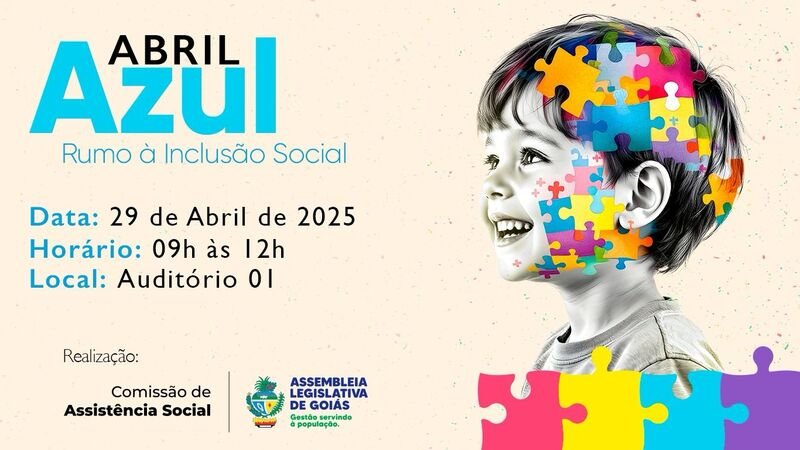 No próxima terça-feira, 29, às 9 horas, o Auditório 01 da Assembleia Legislativa será palco do evento “Abril Azul – Rumo à Inclusão Social”. A iniciativa, promovida pela Comissão de Assistência Social, sob a presidência da deputada Vivian Naves (PP), tem como principal objetivo fomentar a conscientização acerca do Transtorno do Espectro Autista (TEA).