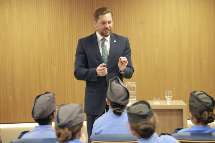 Durante a palestra, os alunos tiveram uma introdução sobre o funcionamento da Assembleia Legislativa, o papel do parlamento goiano e a estrutura dos Três Poderes. O presidente da Assembleia Legislativa, deputado Bruno Peixoto (UB), também esteve presente e conversou com os estudantes sobre a importância do projeto. “No futuro, vocês vão cuidar do nosso Estado e da população. Queremos mostrar para vocês o que a Assembleia faz. Aqui são elaboradas leis que impactam diretamente o dia a dia das pessoas”, disse, citando como exemplo a legislação que proíbe o fumo em locais fechados e as normas ambientais sobre desmatamento.