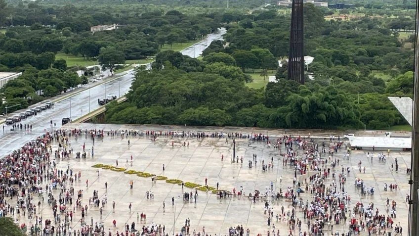 Enquanto autoridades discursam no Salão Nobre, militantes e movimentos sociais organizam um ato paralelo em frente ao Planalto. A estimativa é de cerca de três mil pessoas, em um roteiro que se repete desde 2023: cerimônia oficial, mobilização de base e descida presidencial da rampa para cumprimentar apoiadores.