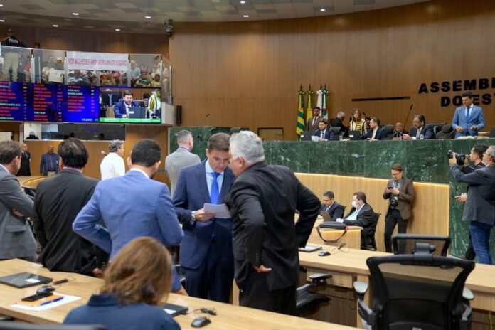 Durante a última semana, a Assembleia Legislativa de Goiás (Alego) realizou três sessões ordinárias deliberativas em plenário, marcadas por debates e votações. Os parlamentares se dedicaram a discutir temas diversos, como infraestrutura, inclusão, ética parlamentar, saúde pública e medidas fiscais, além de apreciarem projetos para o desenvolvimento do Estado. Em destaque, a aprovação, em primeira fase, de um empréstimo internacional de US$ 90 milhões junto ao Banco Interamericano de Desenvolvimento (BID). Ao todo, dos dias 27 a 29 de maio, foram deliberadas 39 matérias, das quais, 16 tiveram sua tramitação finalizada na Casa.