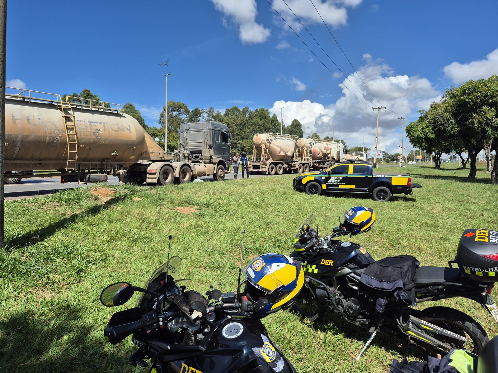 Durante a fiscalização, um dos caminhões abordados foi flagrado com um excesso de 12 toneladas de carga, além do limite permitido. O veículo foi conduzido ao pátio do DER-DF, onde precisou ser feito o transbordo da carga excedente antes de o veículo ser liberado para seguir viagem.