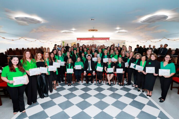 Alberto Sobrinho também discursou em homenagem âs mulheres da Fraternidade Feminina. “Hoje, homenageamos aquelas que estão presentes na vida maçônica. Hoje, de uma forma especial, proporcionamos às cunhadas esse diploma de honra ao mérito pelo trabalho que realizam em ajudar aqueles mais necessitados. As cunhadas ajudaram a crescer os trabalhos sociais e as lojas maçônicas. Por isso, queremos agradecer vocês mulheres-coragem, por ajudarem nossa missão e fazer crescer a maçonaria”, encerrou.