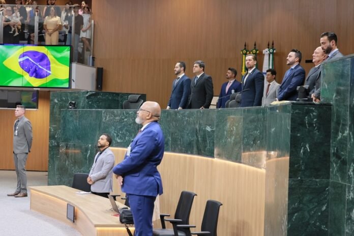 A homenagem foi proposta em conjunto pelo presidente da Casa, Bruno Peixoto (UB), e pelos deputados Delegado Eduardo Prado (PL) e José Machado (PSDB), e foi realizada na noite dessa segunda-feira, 17, no Plenário Iris Rezende Machado.
