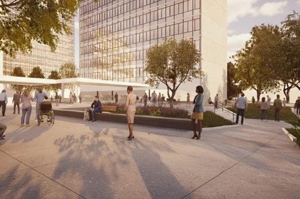 A proposta prevê a criação de duas novas praças localizadas na Quadra 1, entre os edifícios dos blocos B, C e D, onde serão instalados bancos, áreas sombreadas, além de jardins e iluminação pública. O objetivo é que se tornem áreas de convívio com prioridade ao bem-estar do pedestre.