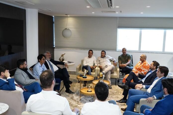 O presidente da Assembleia Legislativa de Goiás (Alego), deputado Bruno Peixoto (UB), recebeu, na tarde desta quarta-feira, 14, representantes do Consórcio Intermunicipal Multifinalitário da Região do Norte de Minas (Codanorte). Liderada pelo presidente da entidade, Miguel Felipe, prefeito de Joaquim Felício (MG), a comitiva esteve na Casa de Leis para conhecer de perto a estrutura jurídica, tecnológica e administrativa do Programa Conecta Goiás, referência nacional em conectividade pública.