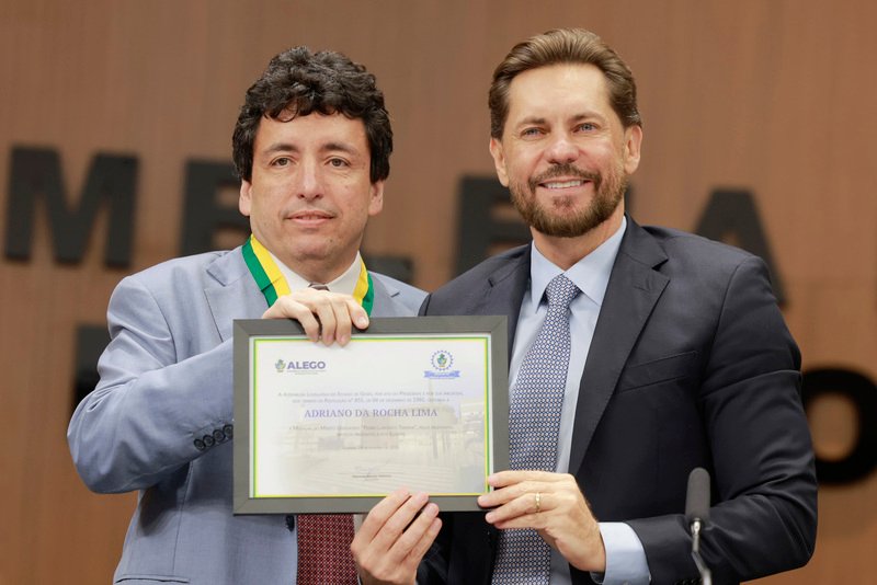 Em seguida, Bruno Peixoto entregou a Adriano da Rocha Lima a Medalha do Mérito Legislativo Pedro Ludovico Teixeira, que, logo após, discursou em agradecimento.
